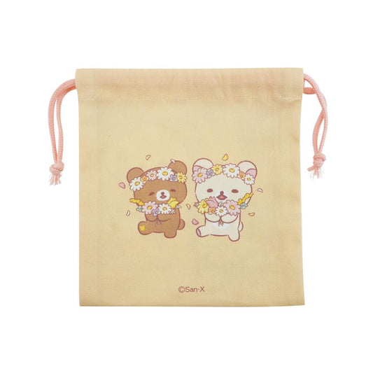 "Korilakkuma and Chairoikoguma Beautiful Flowers" Drawstring Bag